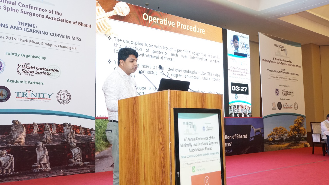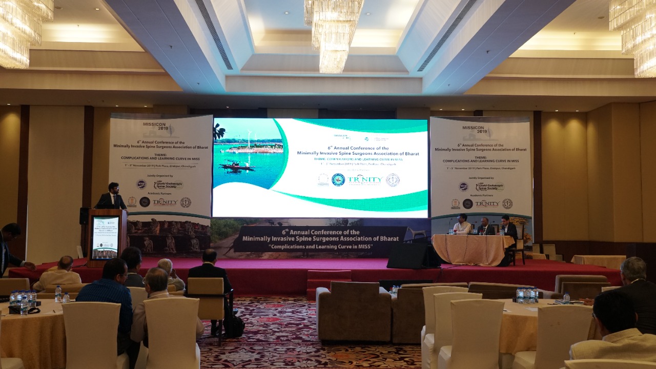 The live surgical workshop was held on the 20th. Surgeries were performed at Fortis Hospitals, Bannerghatta road and were transmitted live to the Grand Ball room at JW Marriott hotel. A total of 6 Minimally surgeries [1 OLIF; 3 MIS-TLIF; 1 Interlaminar Full Endoscopic decompression and 1 Endoscopic discectomy (Destendau)] were performed successfully. Two of the live surgeries were transmitted in 3D. All the surgeries were well appreciated by the audience and there was an engrossing and healthy interactive discussion between the OR and Hall. In between the live surgeries, there were also Break-off sessions wherein Faculty shared their Experience and expertise in various aspects of MIS. Interesting cases, ‘How I do it’ videos and unique cases done either with endoscopic or tubular techniques were presented to enthrall the audience.